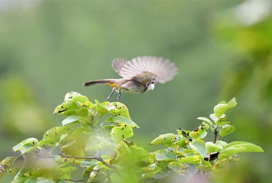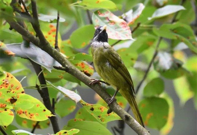 领雀嘴鹎是中国特有鸟类,种群数量较丰富,是山区常见鸟类之一。