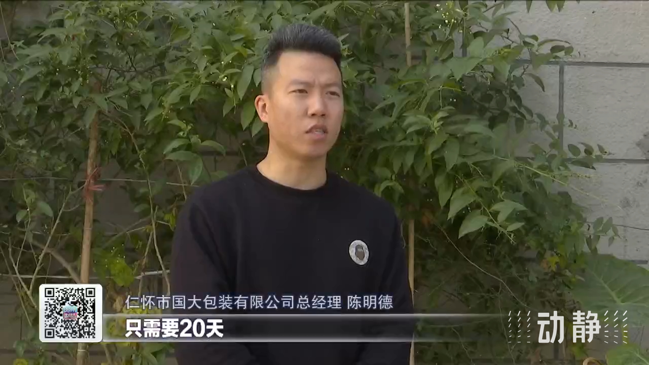 仁怀市国大包装有限公司总经理陈明德说:“只需要20天,白酒的包装材料就可以发往全国客户手里,最近的订单量激增到平时的一倍以上。”