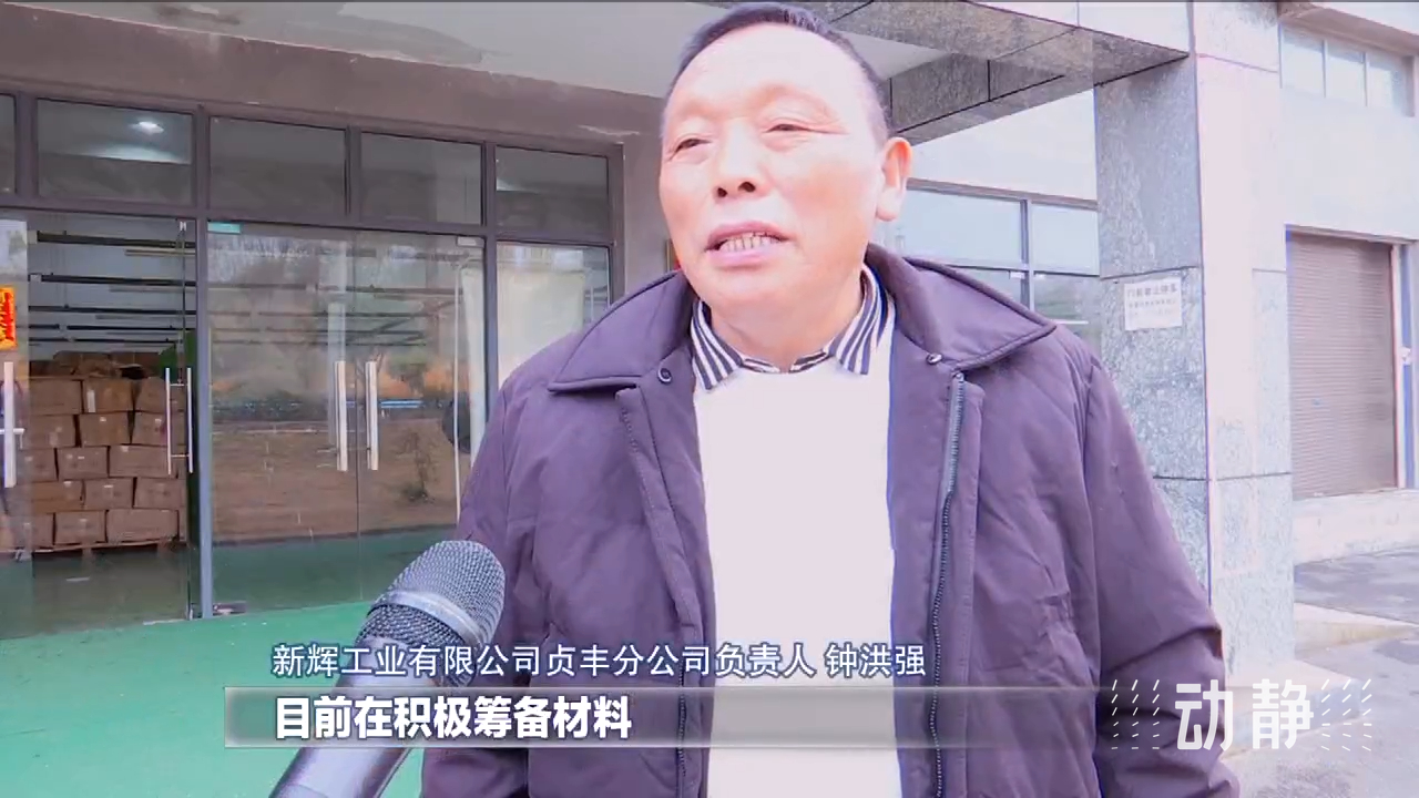 新辉工业有限公司贞丰分公司负责人钟洪强说:“目前在积极筹备材料,同时还发动附近在家的工人一起做,保证订单按时完成。”