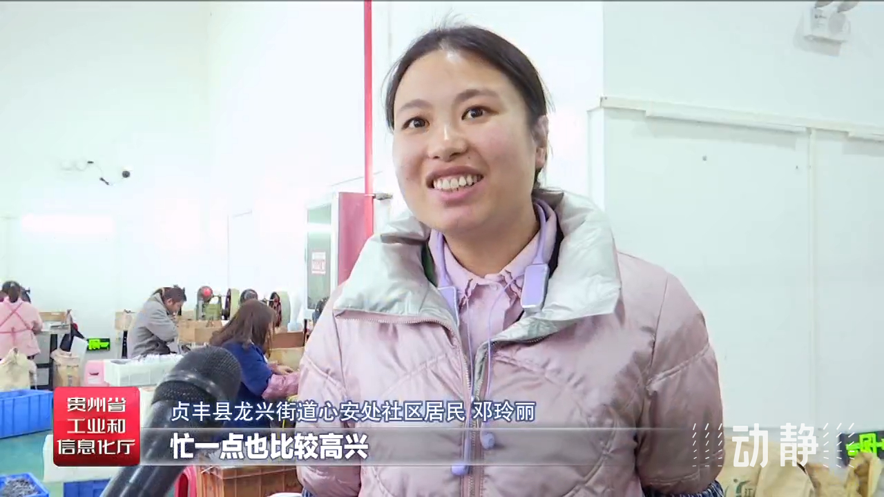 贞丰县龙兴街道心安处社区居民邓玲丽说:“加班加点赶订单,她们工资比平常也要高得多,忙一点也高兴。”