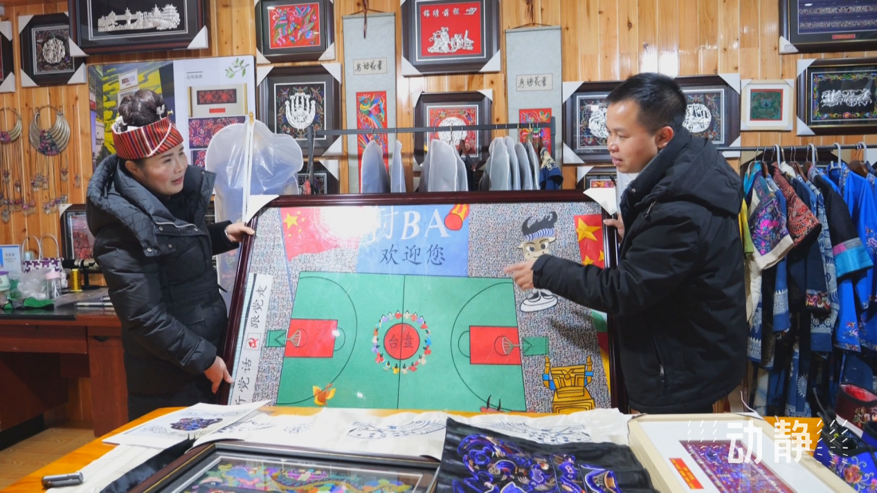 负责对接的孔庆军把需求告诉石传英:“作为奖品需要手工绣,纪念的价值更大一点。我们需要定制能够体现苗族和‘村BA’元素的产品,去进行互动,让更多的观众了解我们的文化。”