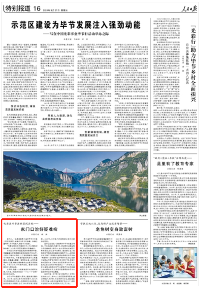 诊疗水平大幅提升,帮扶力量发挥关键作用。2022年,在农工党中央的协调下,四川大学华西医院将大方县人民医院定为协作医院,助其快速补齐管理、诊疗、学术研究等方面短板。2023年,大方县人民医院被认定为三级综合医院。