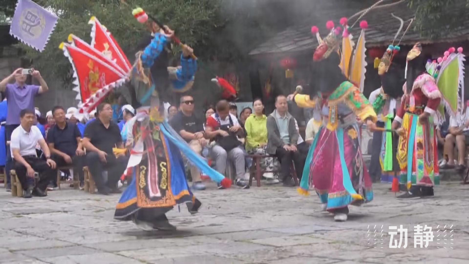 戴上“脸子”、穿上长衫、背插小旗、手持木制短刀长枪,在国庆喜庆的氛围里,面对众多的游客,安顺地戏又开始演绎起了一个个有关“脸子”的故事。