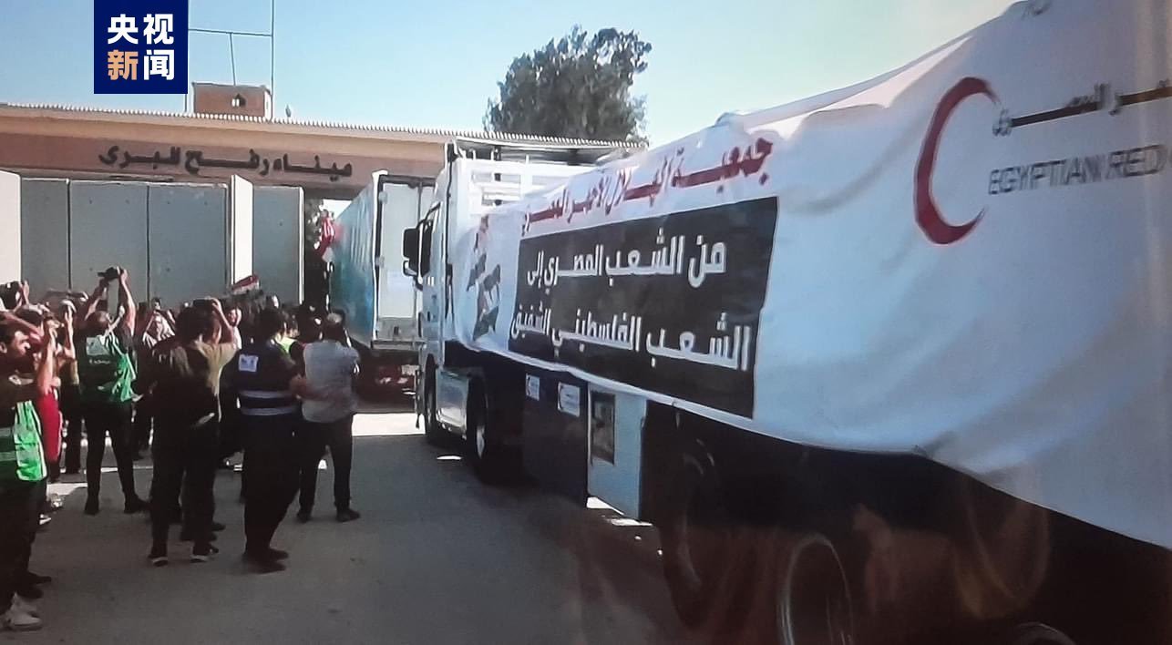 第一批国际援助物资通过拉法口岸被送往加沙地带