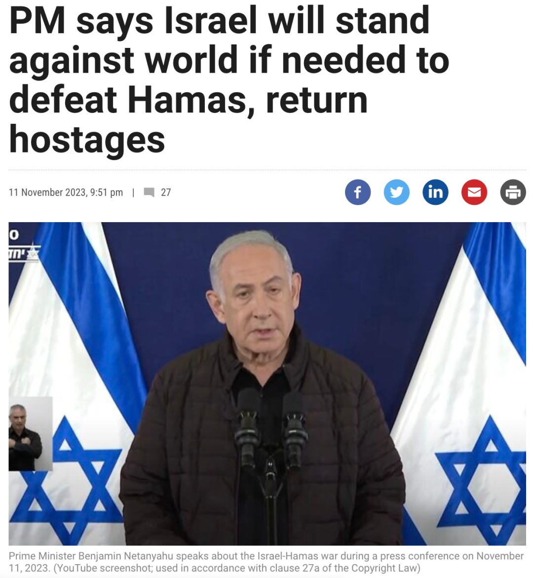 他说,自己一直在努力确保国际社会支持以色列国防军,并称哈马斯突袭以色列之后,“自由世界的每个人都有支持以色列的道德义务……我们的战争就是你们的战争”。他敦促全世界支持他反对“在不归还人质的情况下停火”。