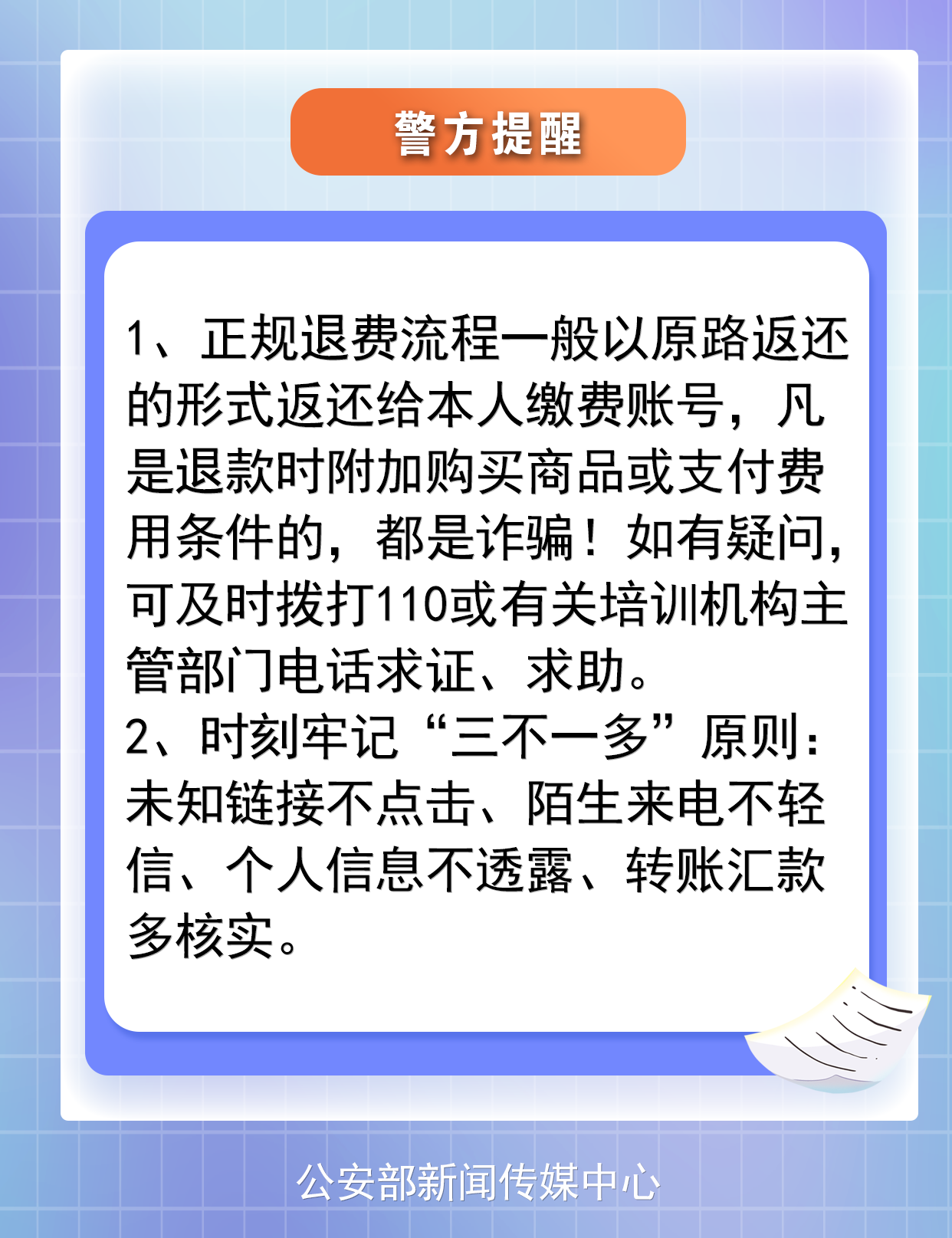 近日,广东省珠海市的张先生收到快递,快递内是一纸通知公告,文件中提到其之前报名的某培训课程可以退款。因文件内容信息与其情况相符,张先生看到后便没再多想,立即按照文件信息添加退费登记客服的QQ好友。客服称,需按照要求购买基金后方可办理退款。一想到马上能收到退费,张先生便在对方的指导下进行了操作。