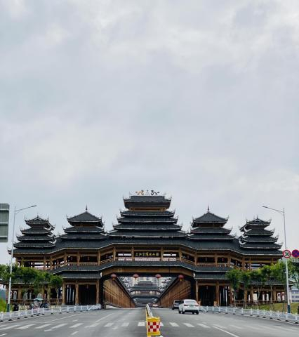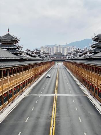 9月7日上午,“多彩民族有多彩”网络主题活动采访团来到三江侗族自治县宜阳风雨桥,感受侗族木构营造技艺。风雨桥又称花桥、福桥,整体由桥、塔、亭组成。宜阳风雨桥于2018年开工建设,该桥全长399.6米,宽28米,分为上下两层,一层为车辆通道,设双向四车道,二层为人行休闲观景,桥中间设人行互通立交。大桥由200多名侗族工匠合力建设,不用一钉一铆,以榫卯结构建造而成。它的建成通车不仅有效缓解县城交通压力,也成为百里侗乡的新景观。