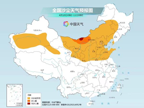 大风经过干燥的沙源地还会带来沙尘天气,今明两天,沙尘影响范围将扩展至华北及东北地区中西部等地。中央气象台今晨6时继续发布沙尘暴蓝色预警,预计,10日08时至11日08时,新疆南部和东部、青海柴达木盆地、内蒙古、甘肃西部和北部、宁夏、陕西中北部、山西、河北、北京、天津、山东、河南北部、黑龙江西南部、吉林中西部、辽宁中西部等地的部分地区有扬沙或浮尘天气,内蒙古中西部部分地区有沙尘暴,局部有强沙尘暴。