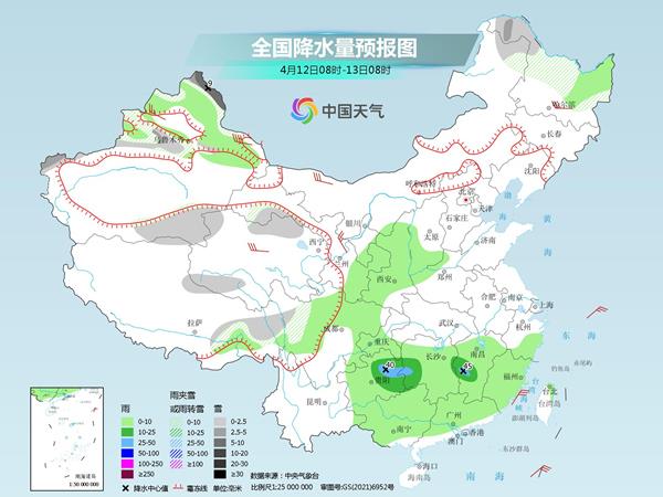 后天,南方新一轮降雨又将接踵而至。预计,新疆北疆北部和沿天山地区、内蒙古东北部、黑龙江西北部、西藏东部、青海北部、甘肃河西、川西高原北部等地部分地区有小雪或雨夹雪,其中,新疆阿勒泰和沿天山的高海拔地区、黑龙江西北部等地部分地区有中到大雪(5~9毫米)。黑龙江东北部、西北地区东部、西南地区东部、江南大部、华南大部等地部分地区有小到中雨,其中,贵州东北部、湖南西部、江西中部等地局地有大雨(25~45毫米)。