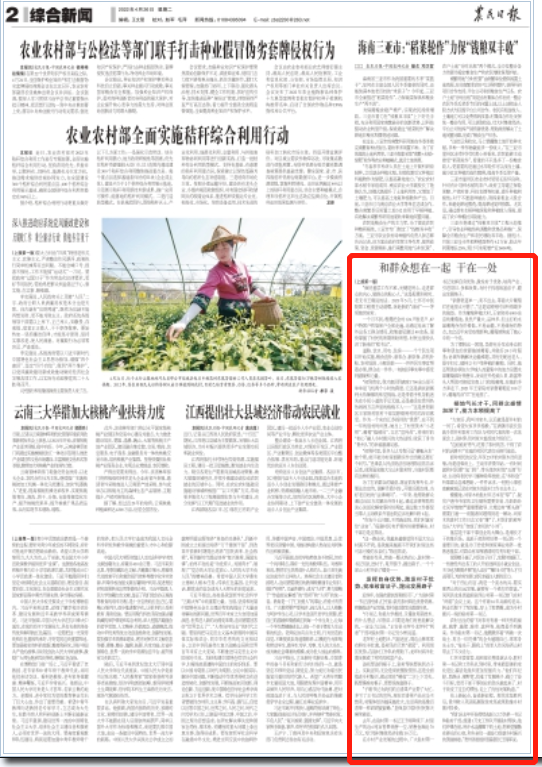 今天的《农民日报》第二版,报道了贵州的优秀党员干部响应号召、牢记嘱托,奔赴各地担任驻村第一书记,用汗水浇灌脚下的土地,把希望播撒在群众的心底,和乡亲们一道奋力绘就乡村振兴的美丽画卷。