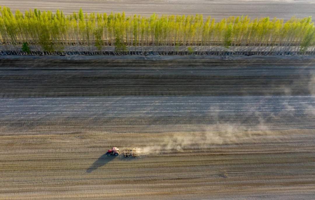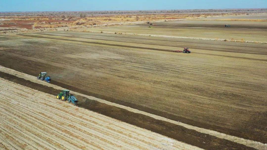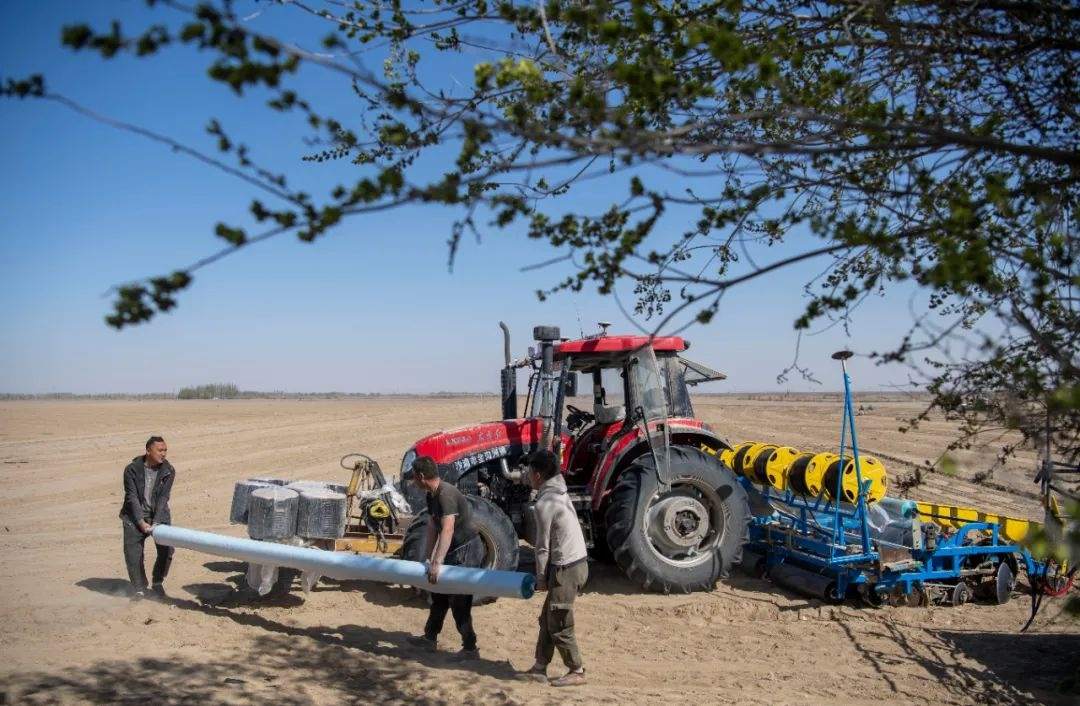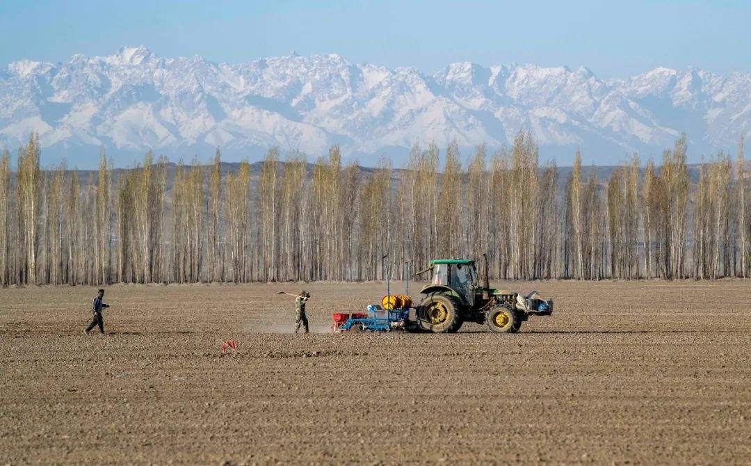 新疆沙雅县塔里木乡春播。新华社发(柳玉柱 摄)