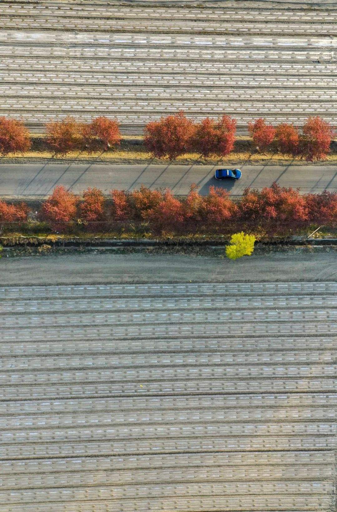 村民驾车从已播种棉田旁驶过。新华社记者 胡虎虎 摄