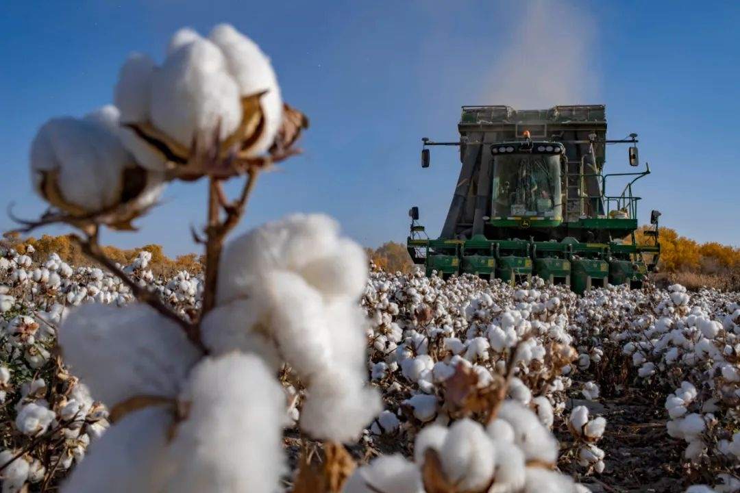 资料图:采棉机在新疆沙雅县的棉田采收。新华社记者 胡虎虎 摄