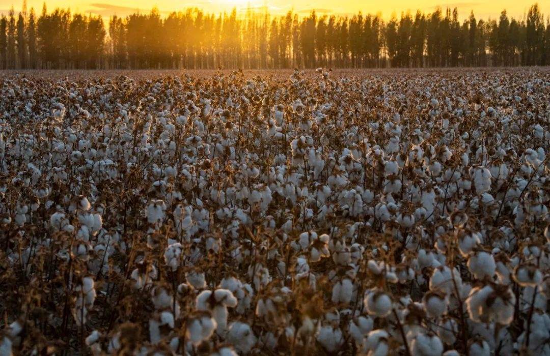 资料图:新疆棉田金秋夕照。新华社记者 胡虎虎 摄