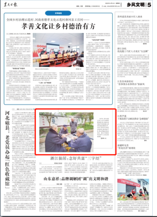 《农民日报》5月5日刊发图片新闻,报道了遵义市汇川区沙湾镇坚持党建引领,积极打造幸福夕阳养老模式,提升养老敬老服务水平,为老人营造安全舒适生活环境,组织党员干部、群众开展敬老爱老活动。