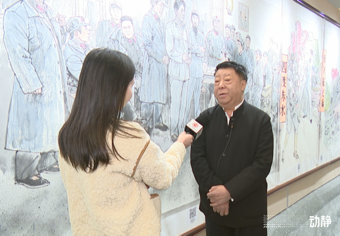 此次来到贵州办展,李福顺在来之前花了五天时间新创作了一幅《遵义会议》赠送给贵州省图书馆。