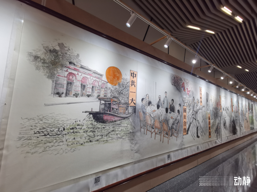 《信仰的红色印记》由海南省文联副主席李福顺创作,画作长达180米,高2米,共104个画面,其中,《遵义会议》《四渡赤水》《挺进大西南》三个主题重现了发生在贵州的重大历史事件。作品采用中国传统水墨画的形式,描绘了建党百年以来的百件重大历史事件。