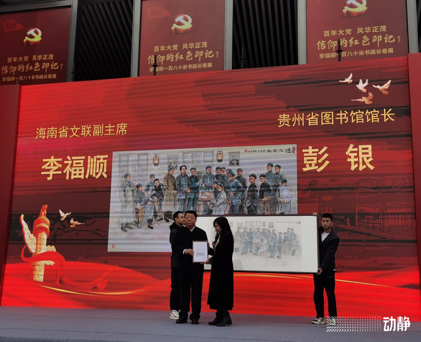 今天(11月18日),由贵州省文学艺术界联合会和海南省文学艺术界联合会主办的“信仰的红色印记——李福顺一百八十米书画长卷展”在贵州省图书馆开幕,这是该画展的第五站,将持续展出至12月3日。