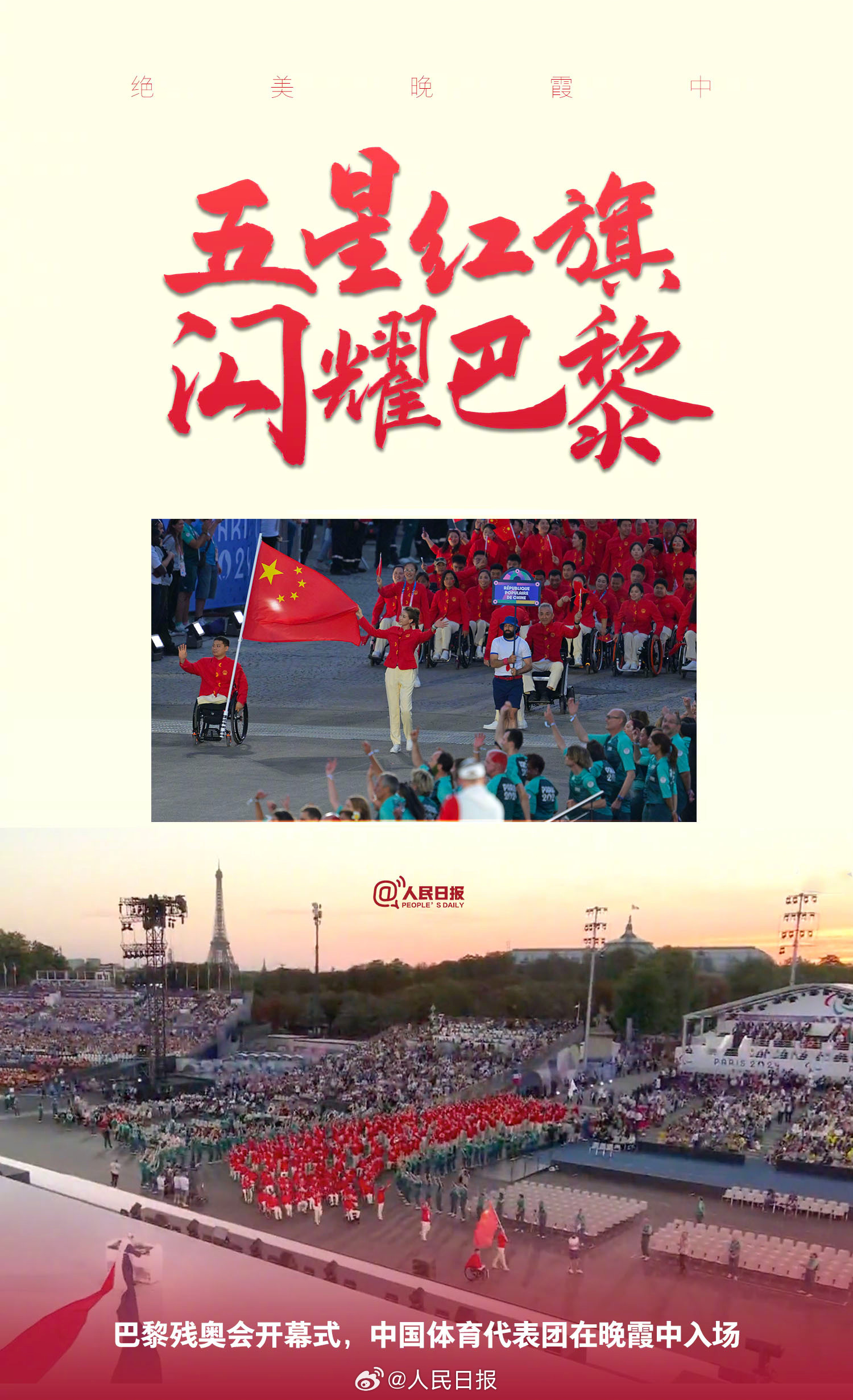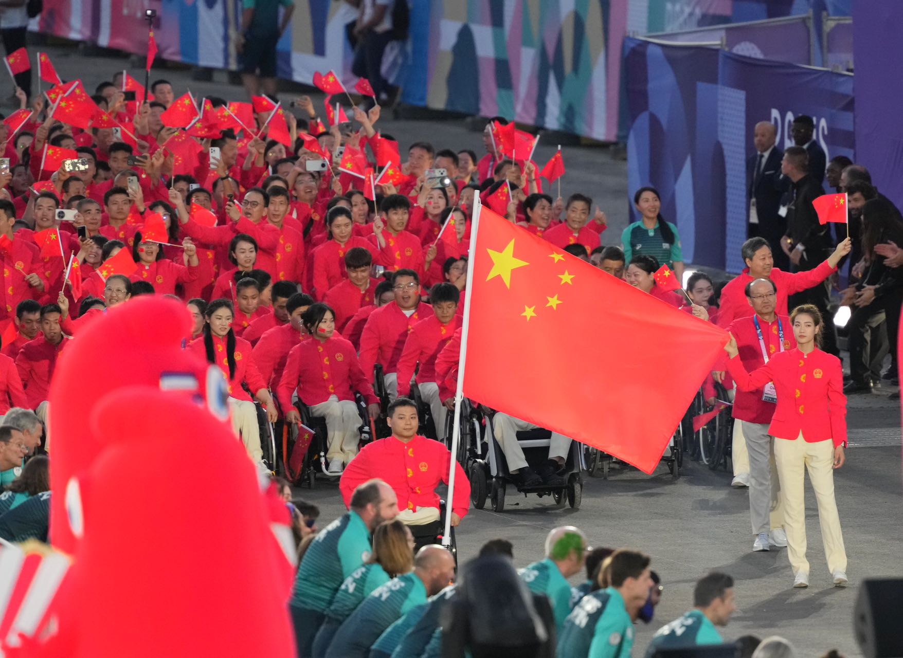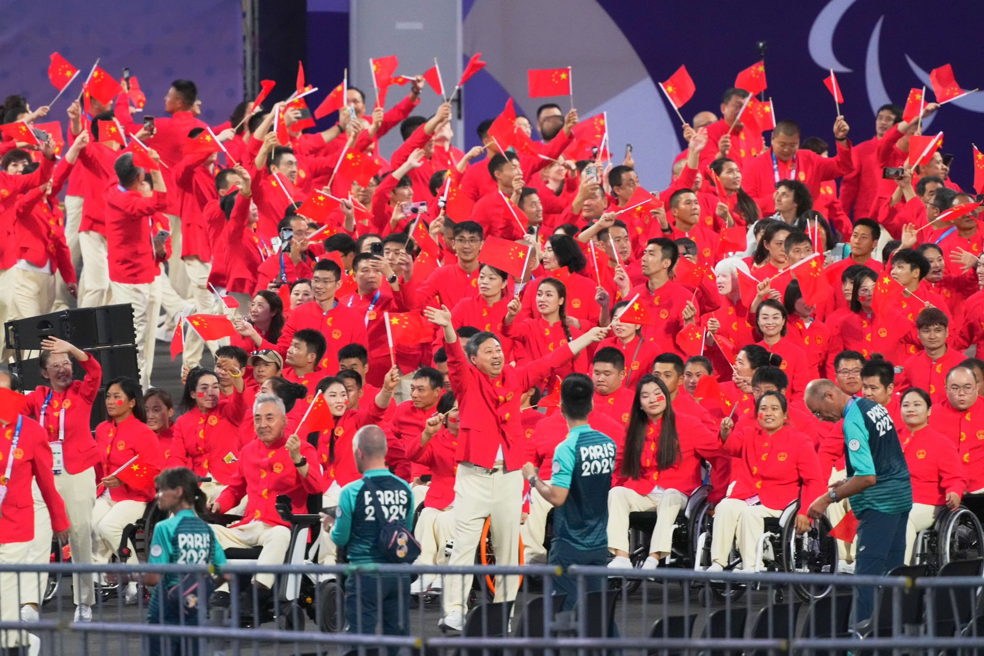 此次为我国第十一次派团参加夏季残奥会。女子轮椅击剑运动员辜海燕、男子举重运动员齐勇凯担任开幕式中国体育代表团旗手。