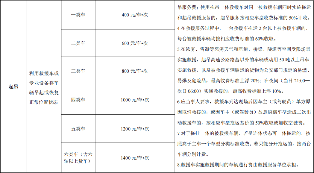 起吊服务根据不同车型按次计费