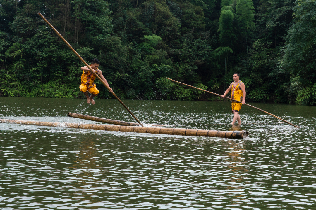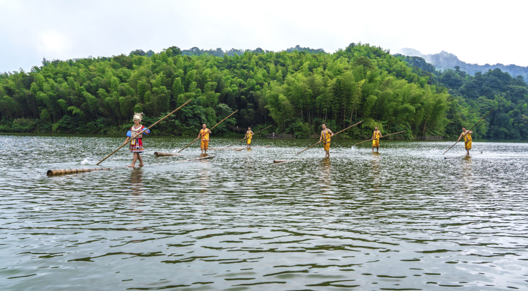 独竹漂发源于贵州省赤水河流域,又称“独竹舟”,俗称“划竹竿”,原是当地老百姓在生产生活中渡河的一种方式,1999年在全国第六届少数民族传统体育运动会上,以表演项目首度亮相便夺得表演金奖。