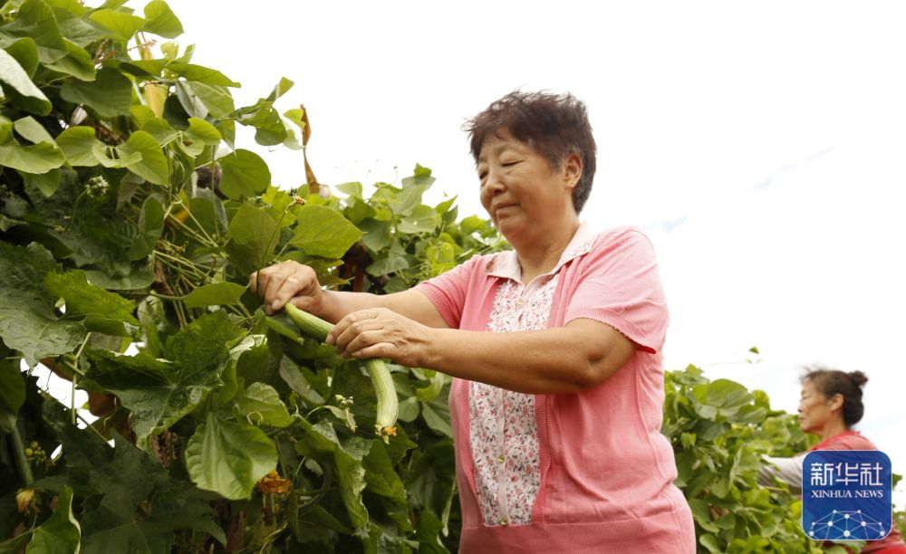 8月22日,甘肃省定西市安定区香泉镇池沟村村民在采收蔬菜。