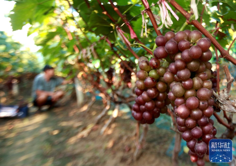 8月22日,在山东省临沂市平邑县地方镇下坡村,村民在田间收获葡萄。