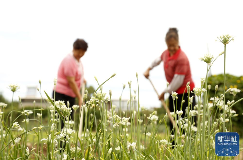 8月22日,在湖南省永州市道县营江街道白地头社区,农民在种植藠头。