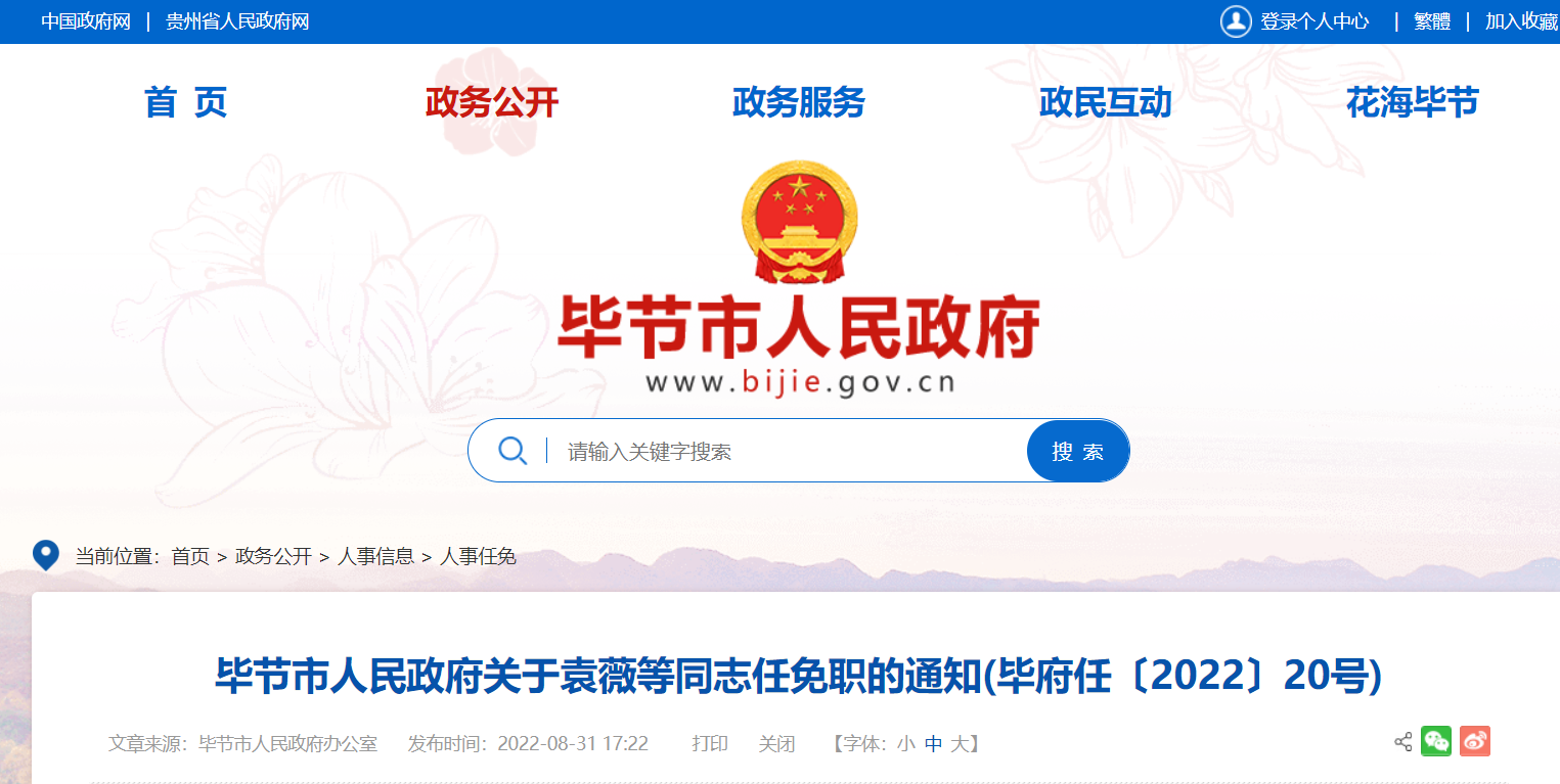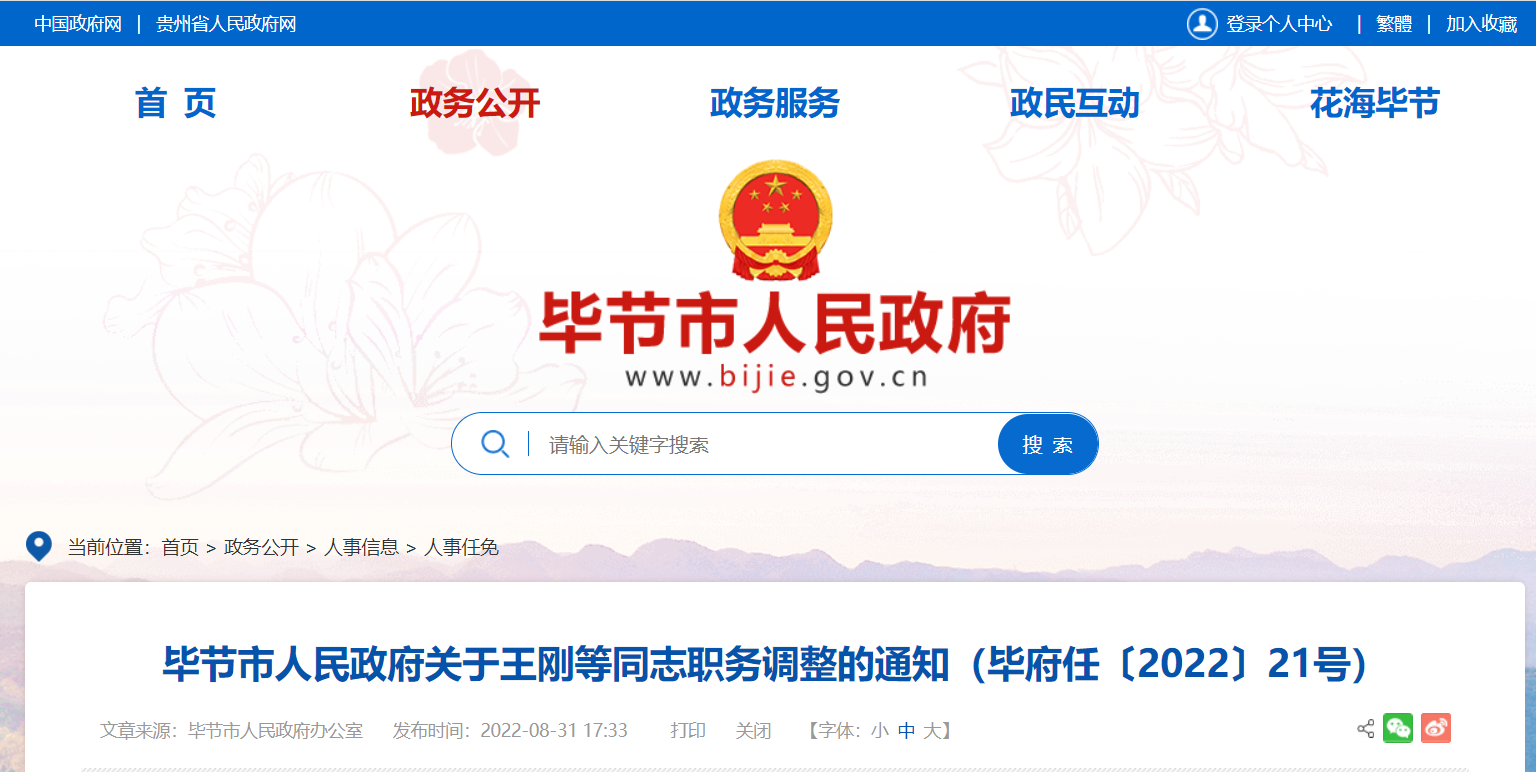 8月31日,毕节市人民政府网公布了两则人事信息,具体内容如下: