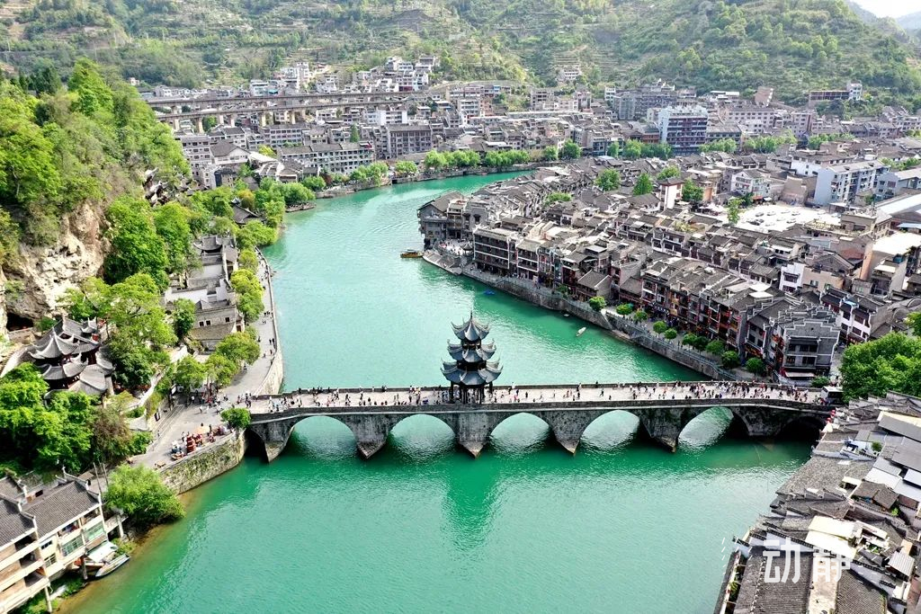 整个古城处于㵲阳河峡谷之间,两边高山环绕,可谓“九山抱一水,一水分两城”。