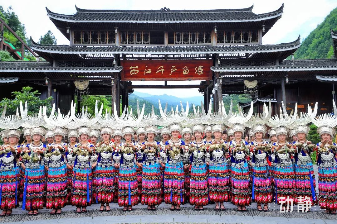 日夜之间,西江千户苗寨变换着,多姿多彩和流光溢彩的衣裳。