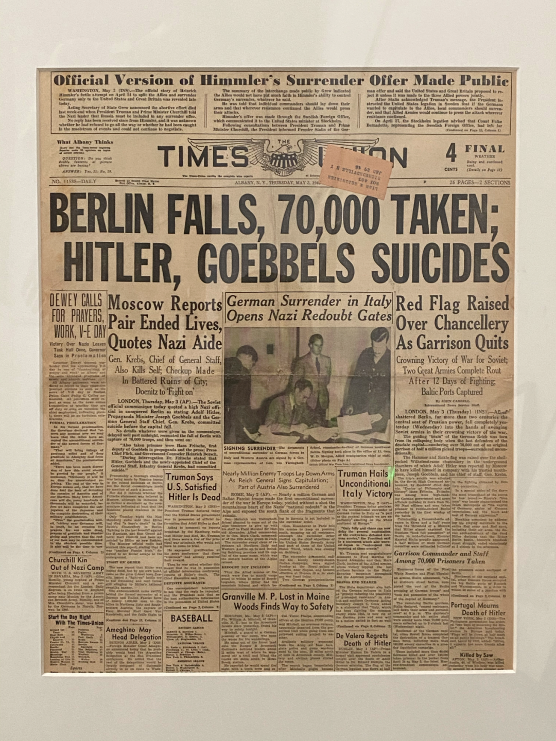 纽约都市报,1857年创办。起初名为Morning Times,1891年更名Times Union。1996年起,仅通过网络发行。本期头版刊登了第二次世界大战临近尾声时的报道:柏林被攻陷,7万德军被俘。希特勒、戈培尔自杀。德军撤离后,苏军在德国国会大厦升起红旗。