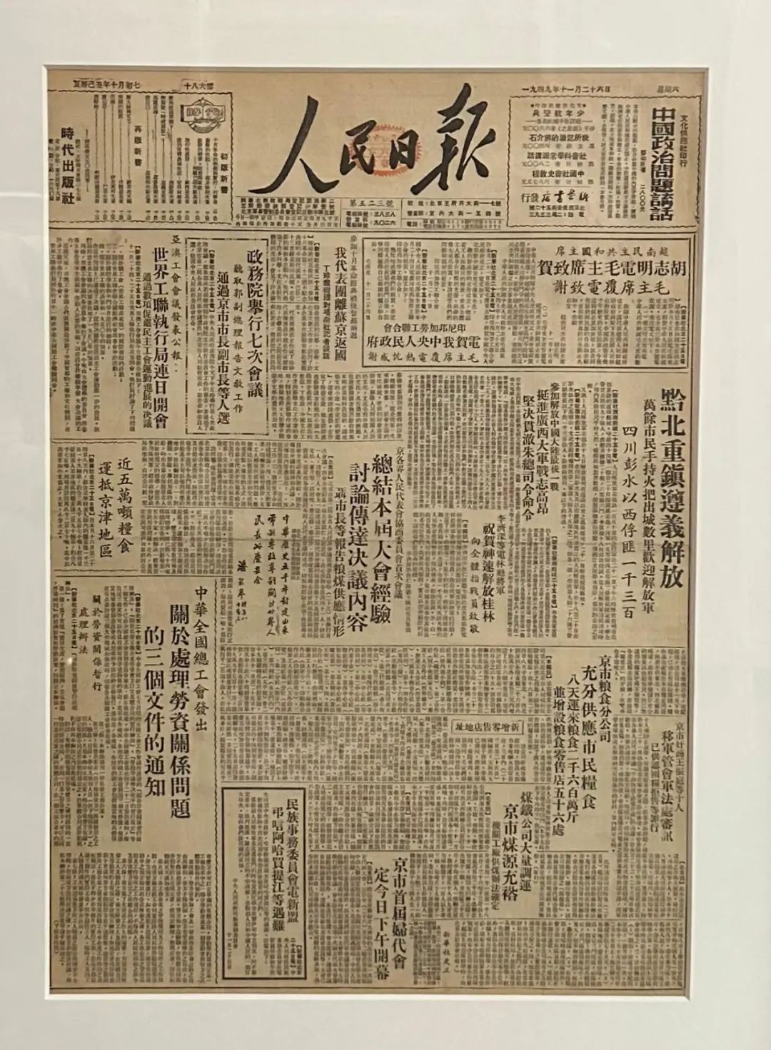 《申报》 1949年4月10日 上海汉口路“毛泽东电覆李代总统说明和平谈判标准”;“江北桥头堡沦陷”;“共军一路向前”及社会新闻若干。
