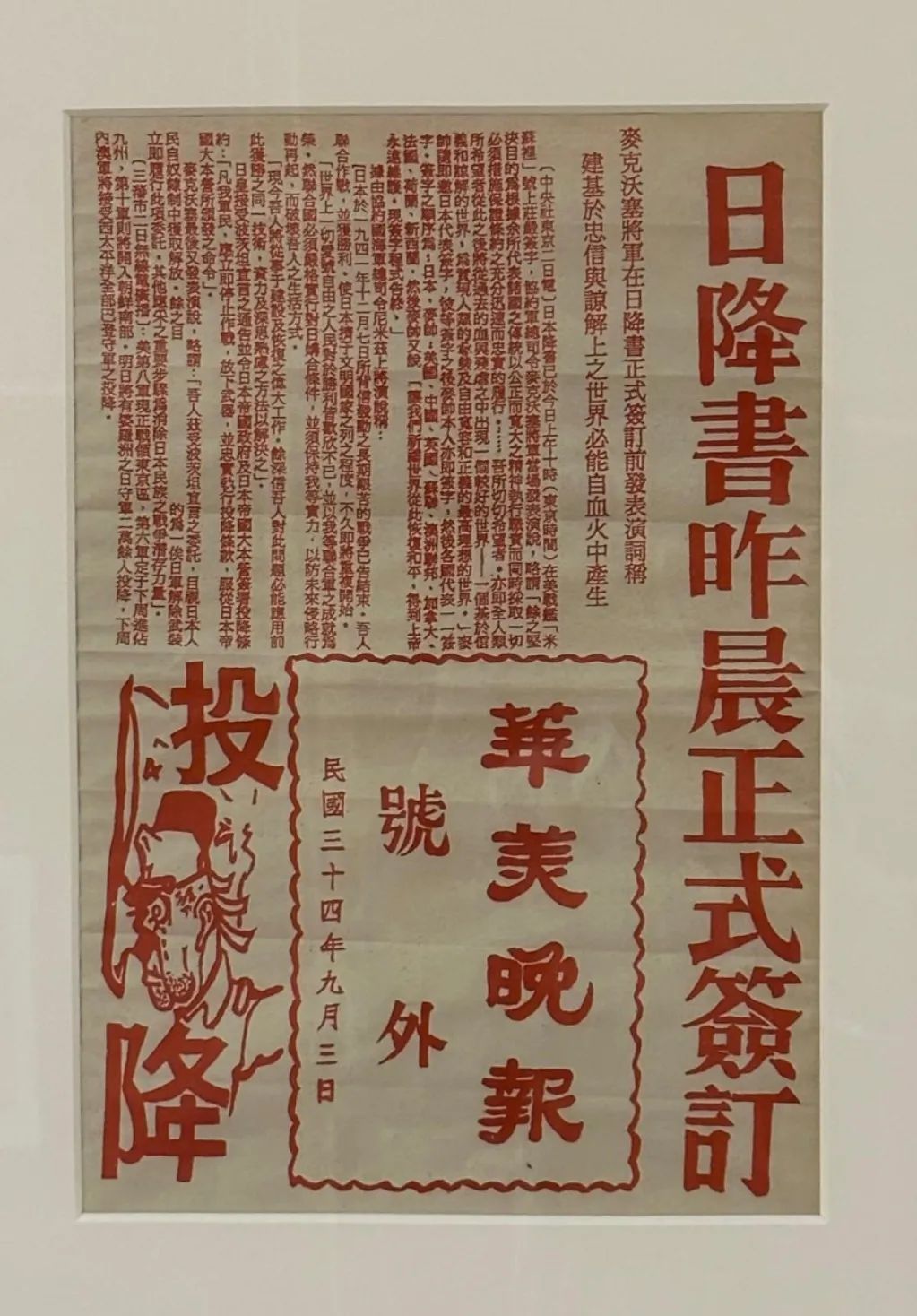 图《华美晚报 号外》 1945年9月3日 上海市汉口路274号 日降书昨晨正式签订。