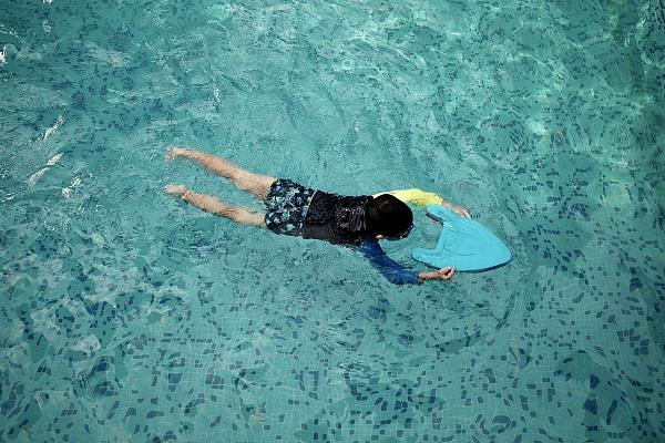 几天前,鑫鑫缠着妈妈带她去小区的游泳馆里游泳,玩得不亦乐乎。