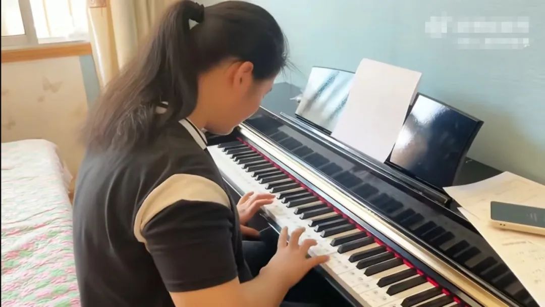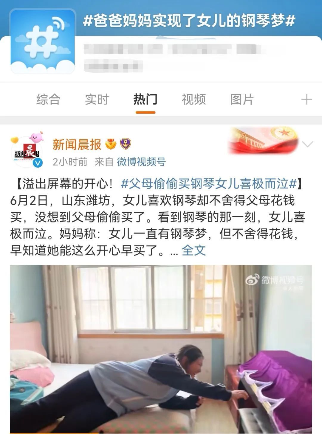 话题#爸爸妈妈实现了女儿的钢琴梦#