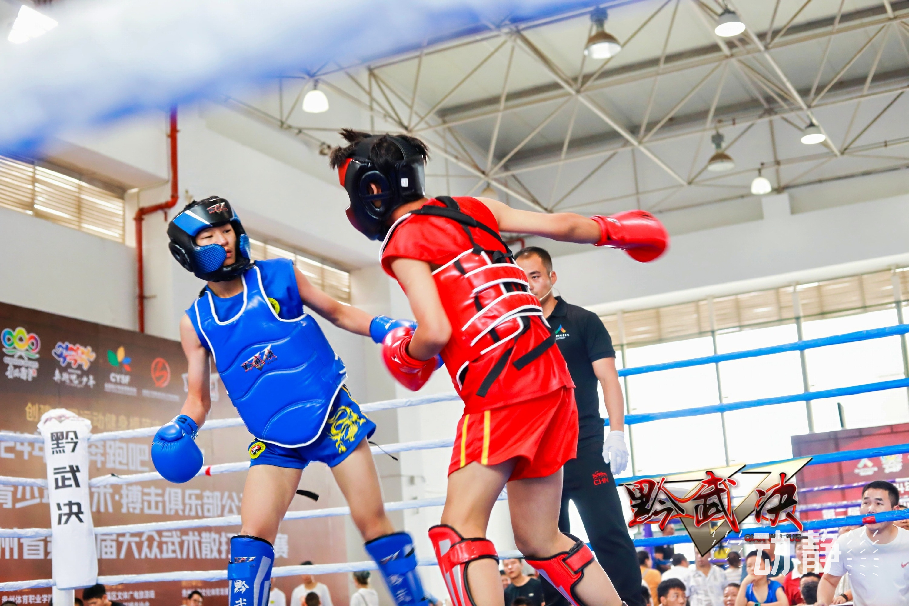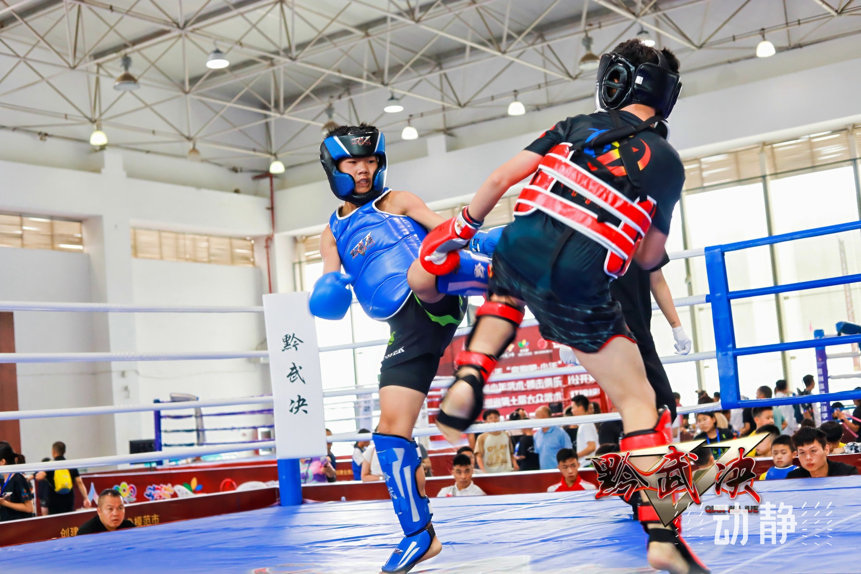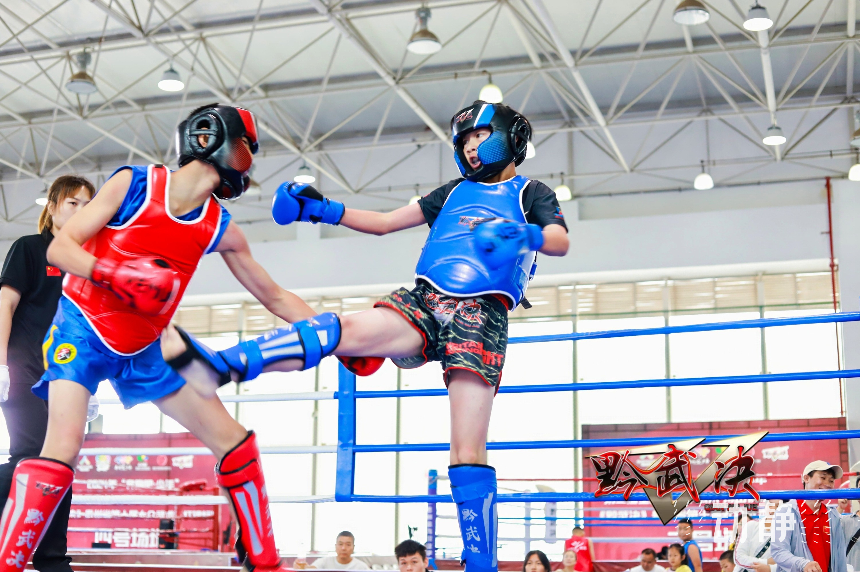 直拳、勾拳、组合拳、踢击和肘击,赛场上,小拳手们打得十分尽力,一招一式尽显扎实功底,让人感受到了搏击运动的魅力和中华武术的风采。