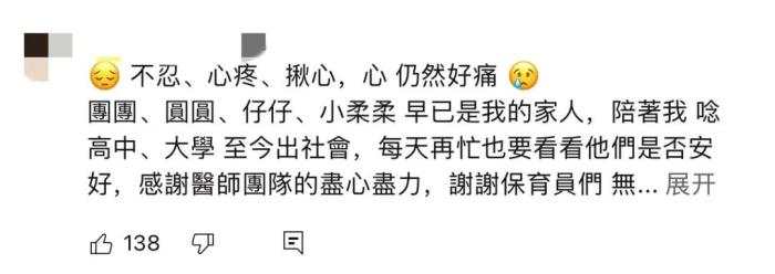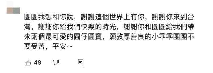 此前,“团团”生病期间,不少岛内民众牵挂不已。据媒体报道,前来的游客在台北动物园通过留言表达对“团团”的喜爱与挂念,更多网友则是通过互联网为“团团”送上祝福。