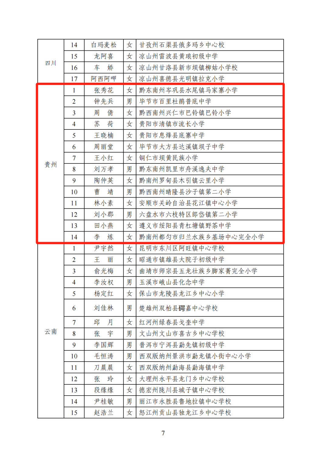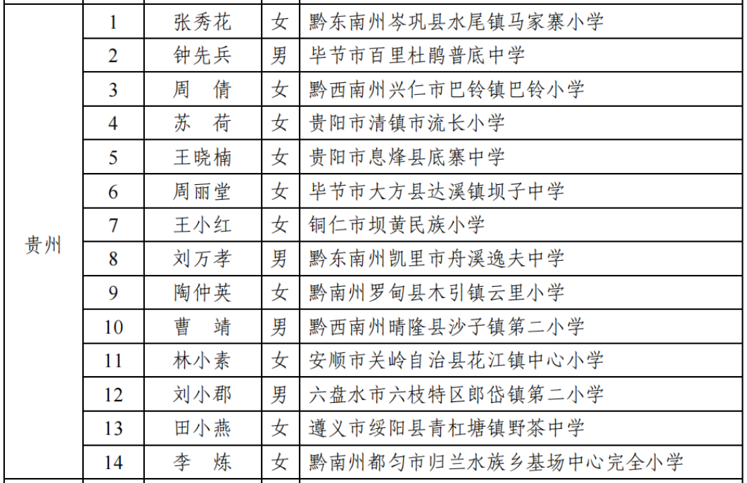 近日,教育部公布2023年乡村优秀青年教师培养奖励计划入选教师名单,贵州14名教师入选。一起来看——