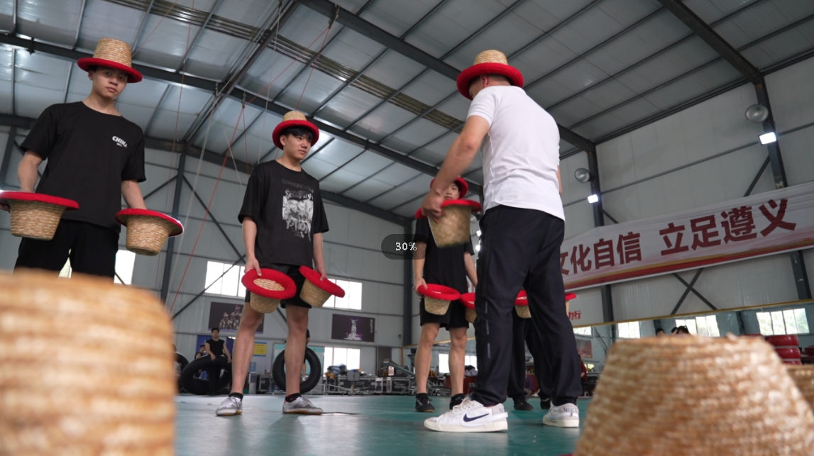在众多杂技项目中,陈龙早已驾轻就熟,特别是《草帽》表演,他的技术已属于“国宝”级别,可以抛8个帽子。“一般演员最多抛7个帽子,抛8个帽子的杂技演员屈指可数。”遵义市演艺集团市场营销部负责人陈倩告诉记者,草帽表演看似简单,实则是一项极具挑战性和观赏性的表演。