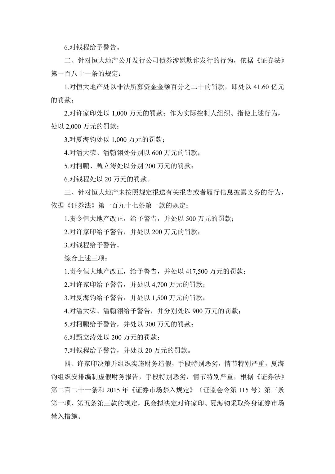 1.责令恒大地产改正,给予警告,并处以 417,500 万元的罚款;