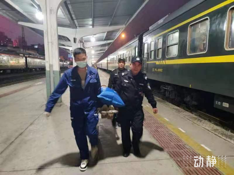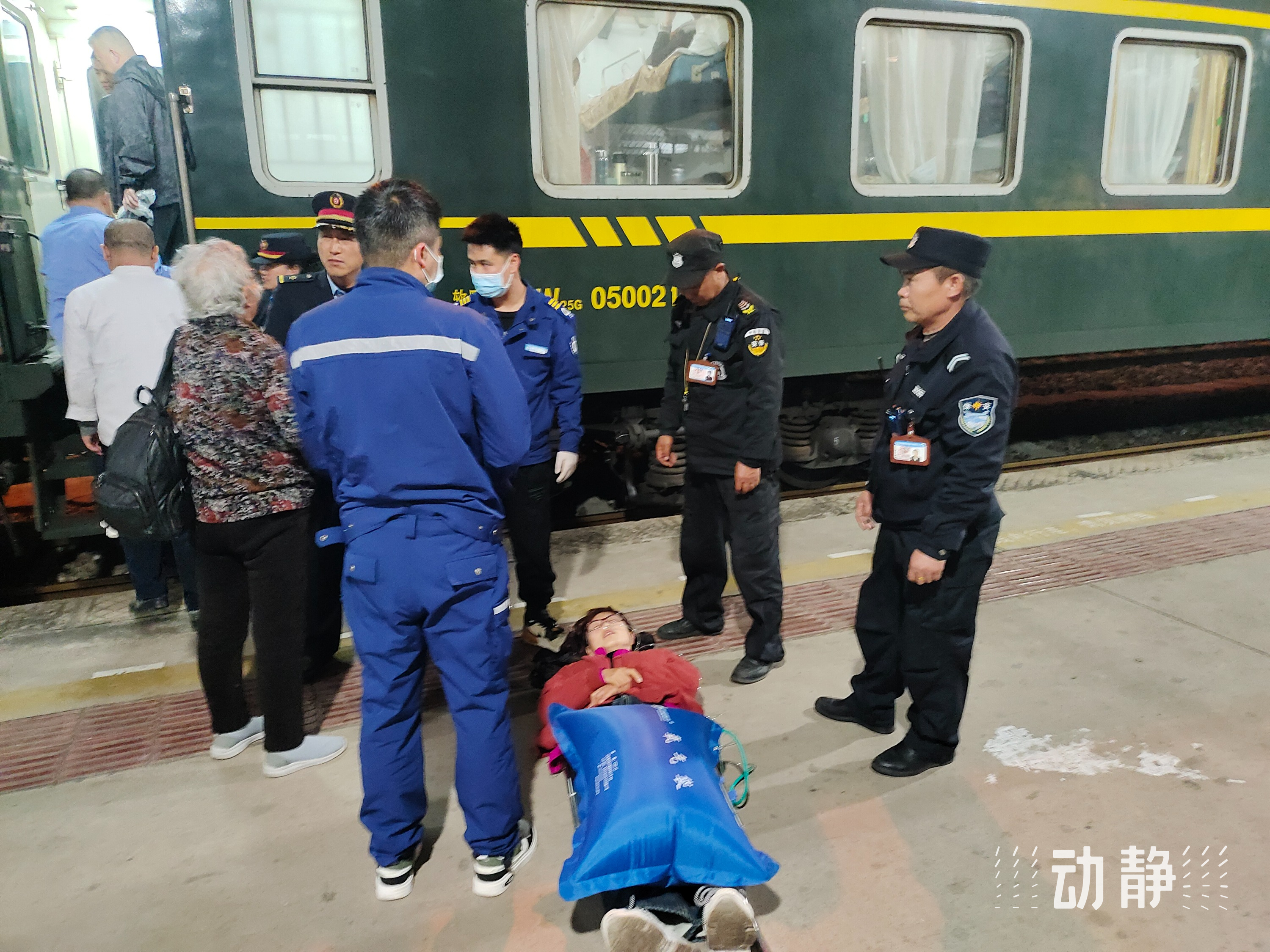 情况紧急,徐庆立即拨打120急救电话并通知值班干部周金后,迅速往16号车厢赶去。接到通知后,周金立即赶赴站台。赶赴途中,他一边进一步跟列车长了解患病旅客具体症状、车票信息、是否有同行人等具体情况,一边调配客运人员和车站安保人员到场协助,开辟好绿色通道,为快速送医做足充分准备。
