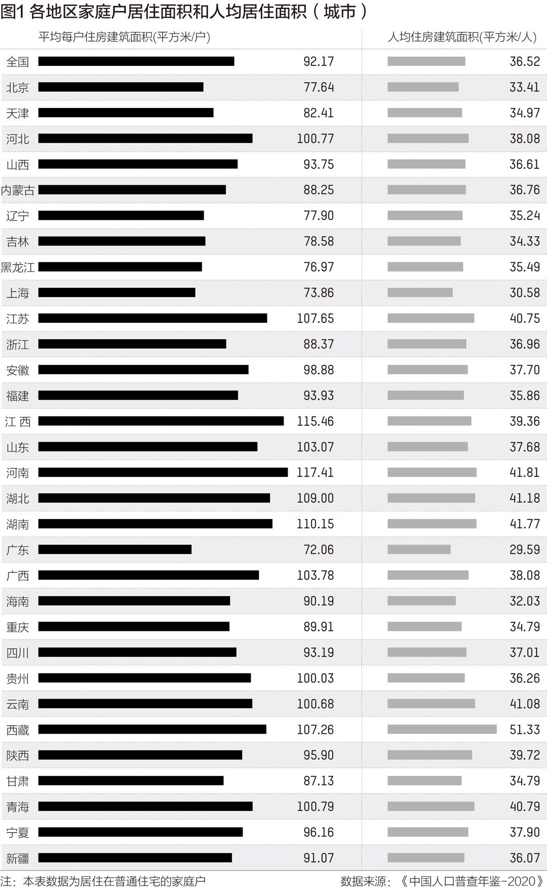 ▲国家统计局近期公布数据显示,我国家庭户人均居住面积达到41.76平方米,平均每户居住面积达到111.18平方米。我国城市家庭人均居住面积为36.52平方米。