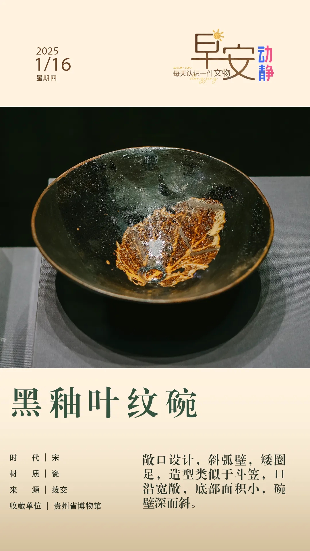 贵州省博物馆的黑釉叶纹碗是吉州窑在宋代瓷器烧造领域辉煌成就的见证,反映了当时吉州窑的制瓷工艺水平和生产规模,也为研究宋代的陶瓷文化、茶文化以及社会生活等方面提供了珍贵的实物资料。