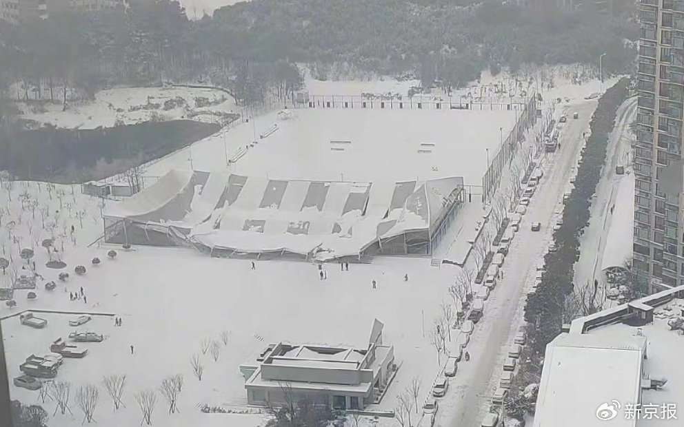 坍塌场馆附近一餐馆经营者告诉新京报记者,近日信阳一直在下暴雪。