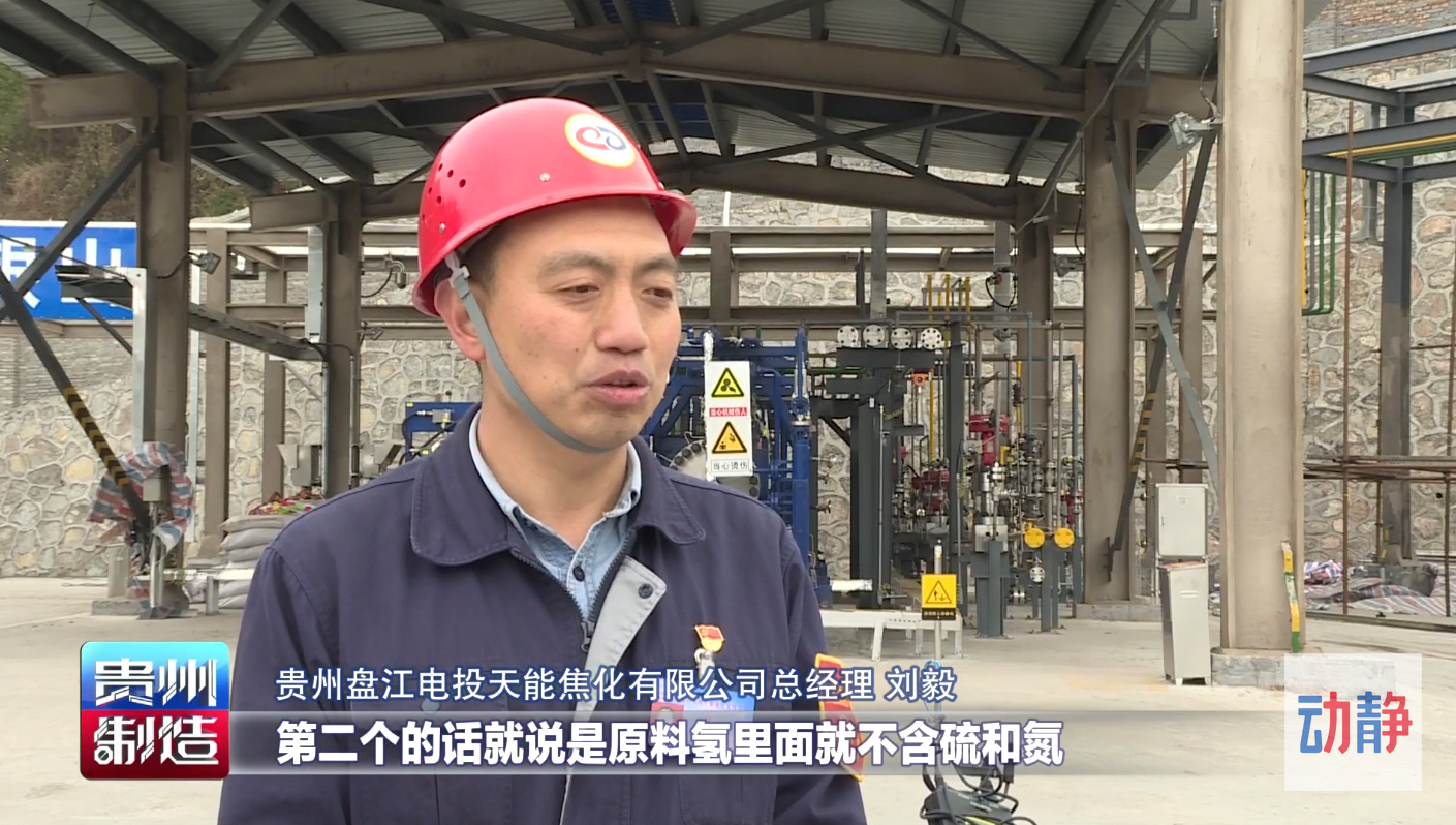 贵州盘江电投天能焦化有限公司总经理刘毅表示,这个项目的优势,第一是氢气的氢含量比较高,能达到80%左右,第二是原料氢里面不含硫和氮。