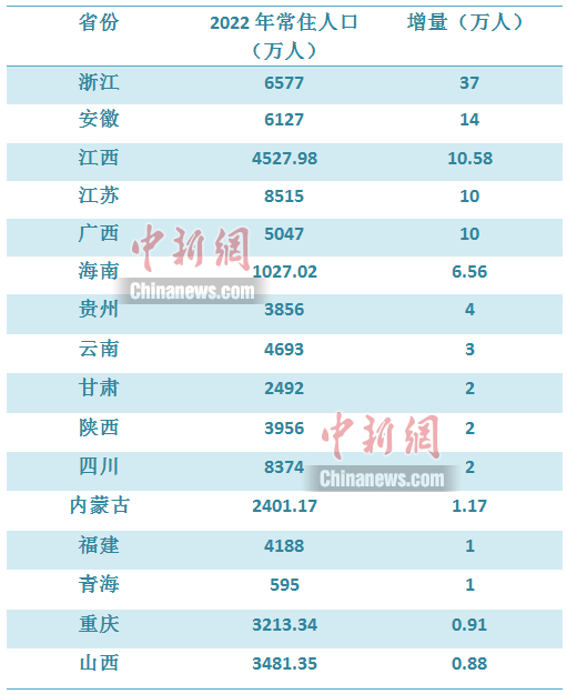 在此背景下,2022年,全国仍有超过一半的省份常住人口正增长。