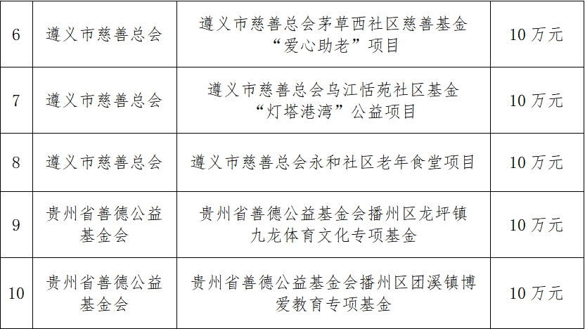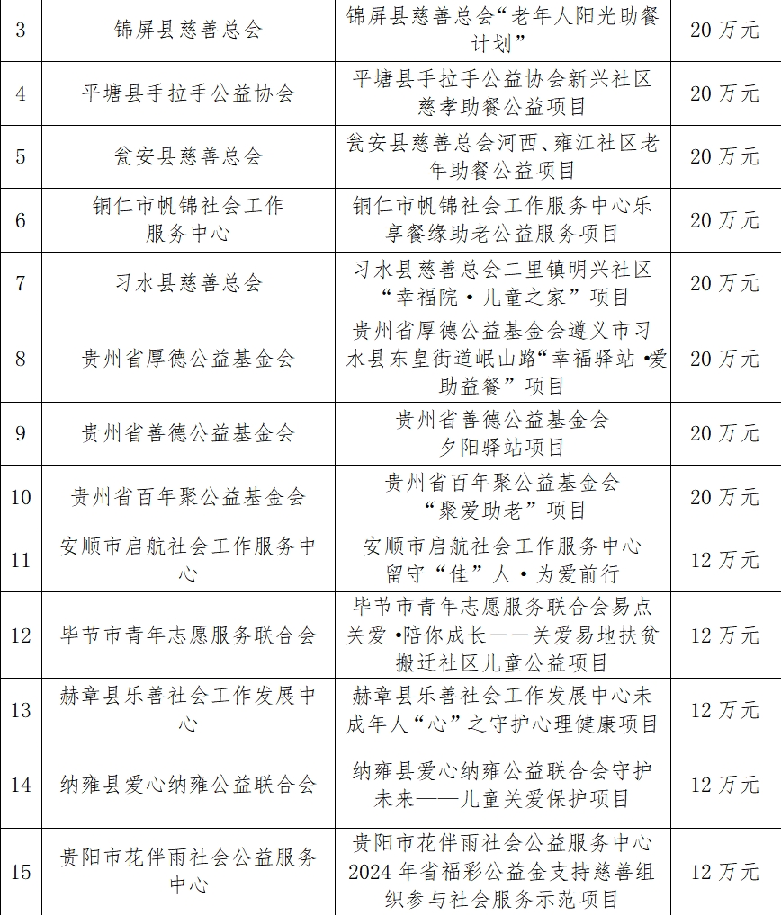 6月25日,贵州省民政厅发布《2024年省级福彩公益金支持慈善组织参与社会服务、慈善组织社区基金项目立项公告》,确定26个慈善组织参与社会服务项目和10个慈善组织社区基金项目。
