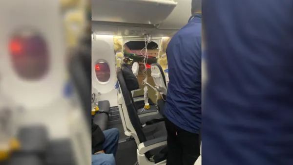 据美联社等多家美媒消息,阿拉斯加航空公司一架飞机5日下午在俄勒冈州紧急降落。有消息称,飞机的一扇窗户和机身一部分曾在半空中发生爆裂,飞机降落后,有乘客曝出的现场照片显示,飞机机身部分受损并有很大一部分不翼而飞,且一出口位置的窗户丢失,目前尚不清楚是否有人受伤。美联社称,据美国联邦航空局的记录,这是一架波音737 MAX 9飞机。