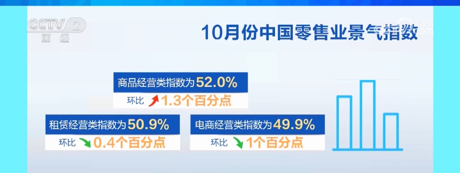 10月9日,中国商业联合会发布10月份中国零售业景气指数为51.3%,较上月微升0.5个百分点,创近一年新高。